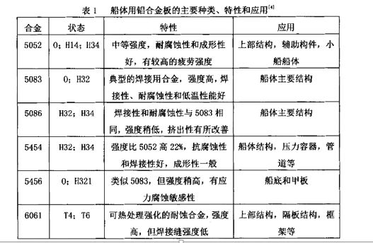 船舶的建造和工作環(huán)境要求材料應(yīng)有良好的耐蝕性、可焊性、可塑性和一定的抗拉強(qiáng)度、屈服強(qiáng)度、伸長(zhǎng)率、抗沖擊等性能。滿足這些性能,并在船舶應(yīng)用最多、效果較好的鋁合金有工業(yè)純鋁、鋁—鎂系和鋁—鎂—硅系合金。近年來(lái),鋁—錳—鎂系合金也日益引起人們的興趣。